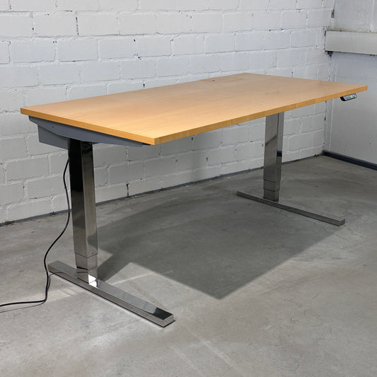 Dobergo Schreibtisch elektrisch höhenverstellbar 160x80cm Ahorn/Chrom