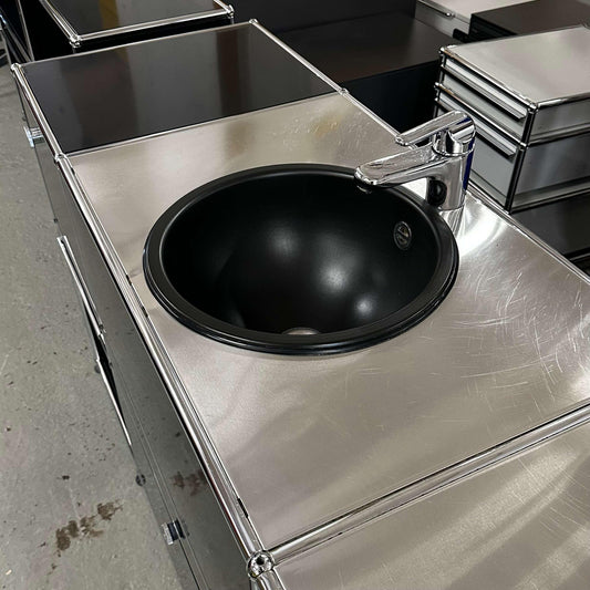 USM Haller Waschtisch schwarz/Edelstahl 50cm tief 5 Fächer